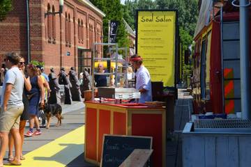 Rondom de Zuiveringshal op het Westergasterrein is de straat geel gekleurd ter ere van de eerste editie van Soul Salon. De zon schijnt en er hangt een intieme festivalsfeer, precies waar initiatiefneemster Cécile Scheele van Powering Sustainable Fashion op had gehoopt. FashionUnited nam een kijkje op de beurs en brengt verslag uit.