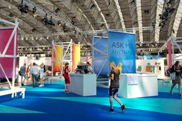 Ook Mint, het platform voor duurzame mode en lifestyle in district D, is weer van de partij. Dit keer is er echter wel gesleuteld aan de opzet: bezoekers en consumenten kunnen nu ook ter plekke iets kopen. Er zijn zowel b2b- als b2c-activiteiten te vinden bij Mint. “Het is heel druk,” lacht Marieke Eyskoot. “We hebben natuurlijk wel last van het mooie zomerweer, maar eigenlijk is het een te gekke dag. Ik leid veel mensen rond, en ze begrijpen allemaal wat we doen op het gebied van duurzaamheid.” En er wordt ook echt gekocht bij de stand. “De kassa rinkelt hoor!,” straalt ze.