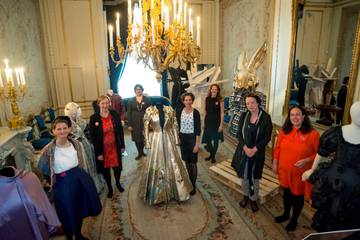Het is een uniek moment. De modeconservatoren van Het Amsterdam Museum, het Centraal Museum, het Fries Museum, het Gemeentemuseum Den Haag, Museum Rotterdam, Paleis Het Loo en het Rijksmuseum die samen op de foto gaan in de balzaal van Museum Willet-Holthuysen, een deftig Amsterdams grachtenhuis. Ze poseren naast een zelfgekozen kostuum uit ieders eigen collectie en zonder schoenen – want op de vloer ligt een kostbaar tapijt. Even later volgt er een tweede fotomoment in de tuin, nu met álle genodigden waardoor de fotograaf op een ladder moet klauteren om iedereen erop te krijgen. Er wordt een toast uitgebracht om te vieren dat Modemuze officieel is gelanceerd.