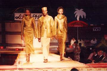 Main Image: Alphadi, Catwalk Image, c.1992-3 (c) Alphadi Second Images: Design by Chris Seydou (c) Nabil Zorkot / Imane Ayissi, Catwalk Image, SpringSummer 2020 by Fabrice Malard Third Image: Shade Thomas at desk 1970s, courtesy of Shade Thomas-Fahm