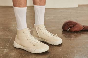 De unisex schoen is verkrijgbaar in twee versies, een low top en high top. Beide modellen zijn uitgevoerd in het wit. De schoenen hebben ‘duurzaamheid in het hart’, aldus het persbericht, en zijn gemaakt van gecertificeerd leer en gerecyclede materialen voor de zool, veters en voering van de schoen.
