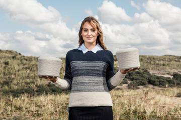 Vandaar dat Brightloops in eerste instantie is gestart met de recycling van wol in de collecties van Loop.alife. “Eerst verzamelen we het materiaal, dat we vaak binnen krijgen in verschillende samenstellingen. Dan sorteren we op kleur en we halen de accessoires eraf,” legt Mensink uit. Het merk doet dat in samenwerking met mensen die moeten worden gereïntegreerd in de samenleving, waaronder gevangenen. “Wanneer alles is gesorteerd, wordt de boel gesneden en uit elkaar getrokken en vervolgens gesponnen tot klossen met garens,” gaat de onderneemster verder.