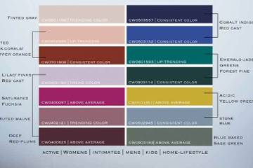 Color Solutions International verzorgt ieder jaar de kleurpaletten van meer dan honderd merken en retailers, waarbij het gebruik maakt van haar eigen Color Wall, kleurenbibliotheek of haar selectie aan gepersonaliseerde kleuren op basis van 10.000 kleuren. Het beheer van kleuren heeft door de jaren heen gezorgd voor een enorme archief aan kleurhistorie. Dit jaar alleen al heeft Color Solutions International bijgedragen aan de ontwikkeling van 900 kleurpaletten. Gebaseerd op deze database heeft Color Solutions International een beoordelingssysteem voor kleuren ontwikkeld, de Relative Color Popularity (RCP).