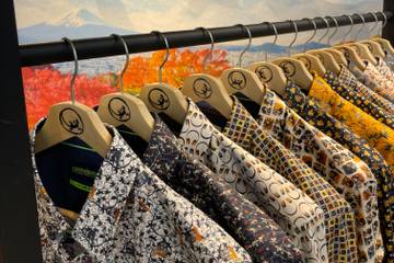 De FW25-collectie is opgebouwd rond drie labels: Groen, Blauw en Wit. Het Groene label neemt de drager mee naar Japan, met speelse prints geïnspireerd op sushi, traditionele sporten en subtiele chopsticks-patronen. Het Blauwe label richt zich op verfijnde microfantasieprints in een breed kleurenpalet, terwijl het Witte label abstractie en technologie omarmt met audio- en video-invloeden. Elk shirt vertelt een verhaal, te danken aan de reizen van fotograaf en hoofd styling Michel Bergsma, die elk seizoen inspiratie opdoet in een nieuw land.