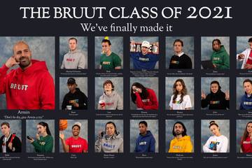 Met deze items kun je Bruut representen, net zoals Amerikaanse studenten met identieke kleding hun eigen college of universiteit vertegenwoordigen. Bruut heeft uit dit concept de inspiratie gehaald om samen met hun eigen team en vrienden een bijpassende fotoshoot te schieten, waarin ze ‘The Bruut Class of 2021’ uitbeelden, door middel van een iconische jaarboek foto’s en de wel bekende jaarquote zoals ze altijd doen op Amerikaanse scholen.