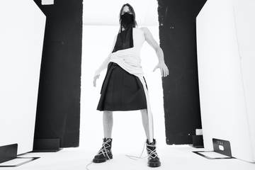 Owens staat bekend om zijn post-apocalyptische heruitvinding van brutalistische mode en excentrieke, architectonische kledingstukken. Met een frisse kijk, geeft Owens de klassieke Dr. Martens-laars uit de jaren 90 een nieuw uiterlijk.