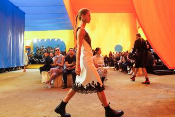 De show van Givenchy was tijdens New York Fashion Week in de buitenlucht. In het decor zaten gerecyclde materialen verwerkt ontworpen door Marina Abramović.