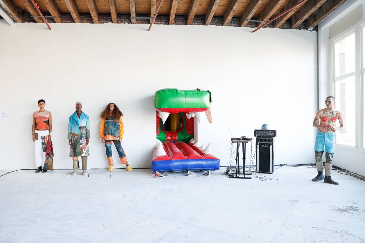 Nog niet zo lang geleden werd er in het grote V&D-pand aan het Rokin vrolijk geshopt voor kinderkleren en keukenspullen. Ter gelegenheid van AFW 2020 werd het gebouw tijdelijk ingericht als een ‘entertainment park vol met creativiteit en innovatie’, zoals Duran Lantink de expositie beschreef waarin het werk van negen jonge ontwerpers en kunstenaars werd gepresenteerd. Deze negen namen deel aan Lantinks talentenprogramma ‘Visions Of’, gerealiseerd in samenwerking met Batavia Stad Fashion Outlet. Hun werk werd gekenmerkt door een sterke focus op duurzaamheid, hergebruik van materialen, en bovenal een variëteit aan eigenzinnige presentaties: van poëtische dansoptredens en humoristische tableaux-vivants tot stille, abstracte installaties. Entertainment, zeker, maar met een diepere boodschap.