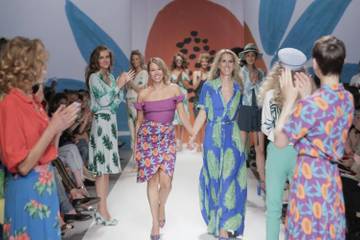 Vorig jaar lanceerde het merk de eerste kledingcollectie tijdens de modebeurs Modefabriek. Nu heeft Fabienne Chapot gekozen voor een ander toneel. Genodigden wachten geduldig af terwijl een van de modellen in een strandstoel wacht tot de muziek start. Haar jaren zeventig haarstijl en kleurrijke badpak geven al een kleine hint van de verschillende items die kort daarna op de catwalk te zien zijn. Vrolijke en grote prints zijn te zien op lange jurken, high rise pantalons en lichte tops.