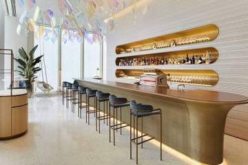 Het café omvat een groot terras, een bar en ‘de exclusieve cocoon room’. Er is ook een verbinding met het restaurant. Japanse chef Yasuke Suga leidt de keukens van zowel het café als het restaurant.