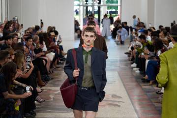 Dit was het geval bij Zegna, waar artistiek directeur Alessandro Sartori de unieke eigenschappen van de meest essentiële zomerstof vierde: linnen. Het vlas voor Zegna's linnen komt uit Frankrijk. Na de oogst worden de vezels naar Italië gestuurd om door hun eigen fabrieken te worden omgezet in hun luxe linnenstoffen, genaamd Oasi Lino. Op de catwalk werd de collectie uitgevoerd in diverse lichtgewicht pakken en verfijnd maatwerk, in een palet van lichtbeige en oker tot warme zonsondergangkleuren en marineblauw. Leren jassen en accessoires waren even zacht, waarbij Sartori het silhouet van stijfheid had ontdaan en in plaats daarvan een ontspannen verfijning aan Zegna's trouwe klantenkring had gebracht.