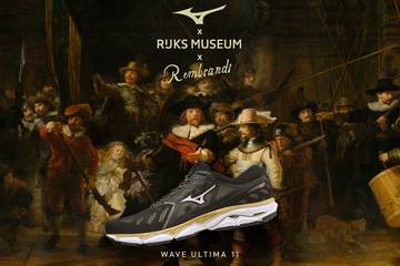 Het Japanse sportmerk Mizuno en het Rijksmuseum in Amsterdam hebben de krachten gebundeld en samen een hardloopschoen ontwikkeld die geïnspireerd is op De Nachtwacht van Rembrandt. Dit ter ere van het Rembrandtjaar 2019.