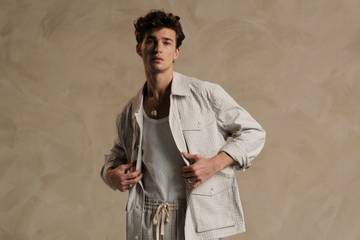 De combinatie van stoffen, silhouetten en het kleurenpalet - bestaande uit crèmes, witten, aardetinten, frisse blauwen en zomergroenen - brengt de Griekse invloed tot leven in elk kledingstuk. Deze collectie straalt gemak en plezier uit voor de moderne gent die het draagt.
