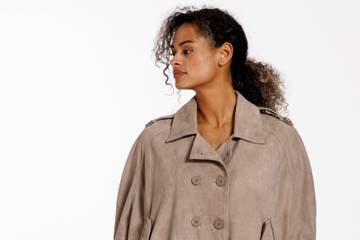 De flash collectie spring summer ’23 kenmerkt zich door het gebruik van suède voor zowel dames als heren. Het is geïnspireerd op de successen uit de vorige collecties. Een zo’n succes was de Bibi in het leer. Een blouse in ponchostijl met een double-breasted effect, gemaakt van een zachte luxe kwaliteit leer. Voor de flash collectie is er gekozen om deze in het suède te ontwikkelen in de kleuren grey taupe en light army green.
