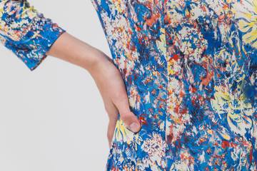 Soepel vallende broeken met een wijde pijp en volumineuze tops in delicate materialen zoals geweven lyocell en gekleurde chambray. Dat deze collectie is geïnspireerd op het leven in de oceaan zie je meteen terug in de fijn gestreepte dip dye. De ontwerpen hebben diepte en beweging met zachte, afgeronde vormen die de nadruk leggen op schouders en de halslijn. De kleuren zijn helder in Persian Jewel, Night Sky en Moon Beam. Verfijnde prints zoals de ‘Seaflow’ werden allemaal met de hand getekend.