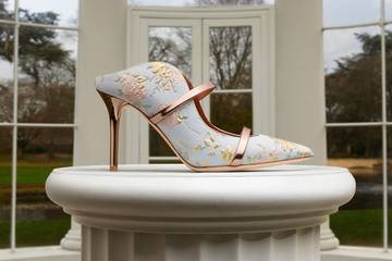 De iconische stijlen van Malone Souliers worden gecombineerd met weelderige, door de regency-periode geïnspireerde materialen die verwijzen naar personages uit de serie - van lichtblauwe bloemen-jacquard voor Daphne Bridgerton tot een gele moiré voor Penelope Featherington. De versieringen en veren zijn geïnspireerd door de hoeden die in het nieuwe seizoen van de show te zien zijn. Voor de heren is er een reeks slip-on silhouetten, van de loafer met kwastjes tot de jacquard slipper geïnspireerd door de garderobe van Anthony Bridgerton.