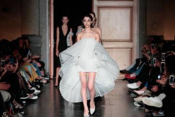 Op de catwalk verschijnen ontwerpen met de welbekende opstaande plissés, iets waar David Laport vaak gebruik van maakt. “Ik kan dingen niet loslaten, ook de plissés niet.” Deze ontwerpen wekken een vorm van herkenning op vanwege eerdere collecties, maar ook een referentie naar de beweging van water en afbrokkeling van ijs. Laport is namelijk geïnspireerd door de smeltende ijskappen op de Noord- en Zuid-Pool. “Het is eigenlijk een fascinatie. Door het smelten en weer bevriezen van ijs en water ontstaan er allerlei patronen. Het is heel schadelijk voor de natuur, maar tegelijkertijd ook heel mooi. Een soort foute schoonheid.”