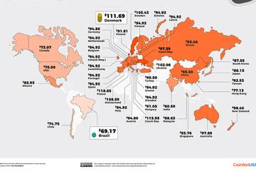 Zo is Brazilië de thuisbasis van de goedkoopste Puma Suedes (69,17 dollar), gevolgd door 70 dollar in de Verenigde Staten. Aan de andere kant, de vier gebieden waar de Puma Suede meer dan honderd dollar kost zijn allemaal in Europa: Oekraïne, Zweden, Zwitserland en Denemarken.