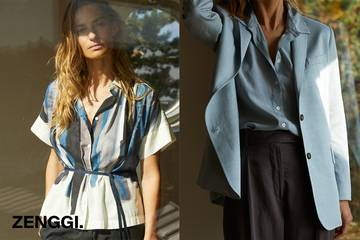 Een deel van drop 3 is ‘easy casual’ te noemen, met katoenen poplin en techno silk als meest gebruikte stoffen. Het kleurenpalet reflecteert de natuur, met een zachte blauw, groen, zand en aarde tinten. Verwacht minimalistische kaftan- en artist blouse-vormen; ruimvallend, luxe en makkelijk te dragen dankzij strategisch geplaatste plooien en rimpels. Tegenover de easy casual items staan de meer tailored designs in linnen lyocell cotton, om de collectie in balans te brengen. De print is een direct gebaar van een kwast op schone stof (gewassen poplin). Lichte pullovers, al dan niet sleeveless, en verfijnd gebreide t-shirts in een mix met organic cotton geven de collectie breedte en veelzijdigheid. Zoals we gewend zijn van ZENGGI hebben de ontwerpen mooie, verfijnde details.