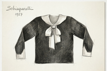 Elsa Schiaparelli, ontwerpster en grootste rivaal van Coco Chanel, brak in 1927 door met haar ‘Bow Knot’ trui met een strik die pontificaal op de borst hing - althans, zo leek het. De linten waren waarheidsgetrouw in het patroon gebreid. Haar collecties raken al snel doordrenkt met zulk surrealisme. Nepstrikken, nepsluitingen, nepgespen, -kragen en -sjaals. Gebreide misleidingen als die worden haar handelsmerk, en overleven zelfs de sluiting van het originele huis (1954).