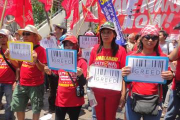 ”Het minimum maandloon waarvan mensen volgens het World Economic Forum een waardig leven kunnen leiden, bedraagt 177 dollar (162 euro) in Phnom Penh, 250 dollar (229 euro) in Jakarta en 345 dollar (316 euro) in Manilla - wanneer mondiale bedrijven deze bescheiden minimumlonen niet betalen, worden hun werknemers veroordeeld tot een leven in armoede,” stelde ITUC secretaris-generaal Sharan Burrow. “Het is pure hebzucht van de bedrijven.”