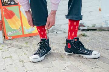 Wat maakt een Alfredo Gonzales-sok nou een Alfredo Gonzales-sok? Hooke: “Ten eerste natuurlijk de opvallende designs, de vrolijke kleuren en het trademark-knoopje op elke sok. Maar het echte onderscheid zit hem in de kwaliteit. We gebruiken een hoge kwaliteit katoen - voor de kenners: een 30/2 type katoen - en we gebruiken meer naalden dan onze concurrenten. Onze 168 naaldenconstructie maakt de sokken steviger, waardoor ze langer meegaan, en zorgt voor meer details in het design. Verder worden de tenen naadloos afgewerkt, wat ultiem comfortabel aanvoelt. Tot slot worden alle sokken voorgewassen om krimpen te voorkomen. En dat allemaal voor dezelfde prijs die andere kwaliteit sokkenmerken ook hanteren.”