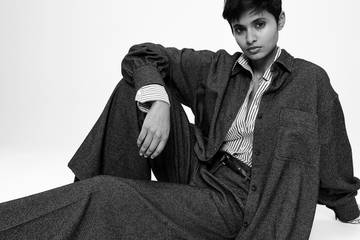 De luxe androgyne stijl van ZENGGI krijgt dit najaar een duidelijk feminiene impuls. De klassieke mannengarderobe dient nog steeds als basis, maar de vertaling is in alle opzichten vrouwelijk. Wijde pantalons en bandplooibroeken met hoge tailles in masculien ogende stoffen als een Prince de Galle ruit, flanel of een speciaal voor ZENGGI ontwikkelde denim-achtige keper in een wol-katoen mix, voelen rijk en zacht aan en vallen soepel tot op de schoen. De taille is daarbij belangrijk, dus veel knitwear tops zijn licht en cropped met fitted boorden zodat ze zich makkelijk laten instoppen of nonchalant op bekkenhoogte rusten.