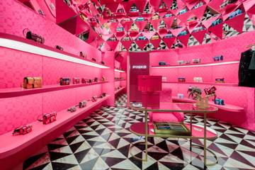 Italiaans modemerk Pinko doet met het nieuwe winkelconcept in Milaan recht aan de merknaam. Het winkelconcept is namelijk felroze - pink.