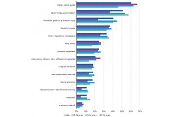 Respondenten tussen de 16 en 24 jaar oud kopen meer online dan de gemiddelde Europeaan; 67 procent van de aankopen bestaat uit kleding en sportartikelen, tegenover de 60 procent voor alle leeftijdscategorieën.