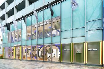 De nieuwe flagshipstore van Delvaux bevindt zich in het iconische Omotesando Hills, een winkelcomplex dat is ontworpen door de wereldberoemde Japanse architect Tadao Andõ. De voorkant van de winkel heeft een glazen gevel van twintig meter hoog en is voorzien van een decorstuk dat zich verspreidt over de twee verdiepingen van de winkel. Het betreft een grote gouden boom, geïnspireerd op de kroon van het Delvaux-logo. Bij de ingang worden delen van de winkelpui verlicht met LED-strips in de kleuren van de Belgische vlag.