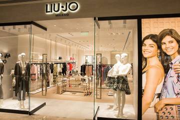 In de winkel zijn de black, white, blue en gold labels en de accessoire- en de schoenencollectie van Liu Jo te koop.