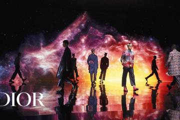 Met meeslepende kosmische beelden van de Franse regisseur Thomas Vanz, combineerde de hypergekleurde, hyperreële digitale herfst 2021 herenshow van Kim Jones het erfgoed van Dior met innovatie, een mix van vernieuwde silhouetten en het zuurgetinte palet van de Amerikaanse kunstenaar Kenny Scharf.