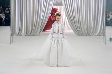Giambattista Valli presenteerde waarde we het modehuis voor kennen: grote volumes en elegant vloeiende silhouetten. De couture jurken waren te zien in vele snoepkleuren en werden geaccentueerd door statement-oorbellen.