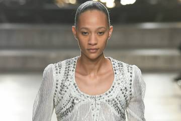 In de SS23 collectie van Isabel Marant worden verschillende stijlen en stoffen gecombineerd. Zo wordt leer gemixt met zijde en worden slipjurken gedragen over losse broeken. Het kleurenpalet bestaat uit aardetinten, afgewisseld met uitbundige bloemenprints. Bekijk hieronder de hele show.
