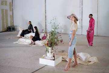 n het oude V&D-gebouw liep het aanwezige publiek langs meerdere tableau vivants en sculpturen gekleed in de nieuwste collectie van het merk. De gedeconstrueerde items, vooral een complete look bestaande uit meerdere gedeconstrueerde sneakers, waren tot in de puntjes uitgevoerd. Het collectief heeft voor de presentatie op de ‘Reset’-knop gedrukt.