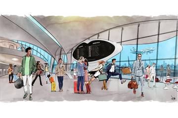Dit alles met een los silhouet, zoals je terugziet in de illustraties van Hilbrand Bos. We gaven hem de inspiratie van de Golden Age of Plane Travel uit de 50’s en 60’s. Vertaald naar het hier en nu. Waar de colberts een minimale schoudervulling hebben en de knoopsluiting iets omhooggaat. De broeken mogen dan weer wat wijder, rechter en hoger in de taille.