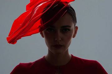 De bekende hoedenontwerpster liet haat creativiteit de vrije loop en kwam tot een hoed in plexi ® met grafische, sierlijke voluten: de ‘Red Innovation’.