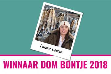 Vlogger Famke Louise is de winnaar van de verkiezing tot Dom Bontje 2018. Ruim 25.000 dierenliefhebbers brachten afgelopen maand hun stem uit op de verkiezing die jaarlijks georganiseerd wordt door dierenbeschermingsorganisatie Bont voor Dieren. Met een nipte meerderheid van de stemmen wist ze concurrent Anky van Grunsven achter zich te laten. Famke Louise weigert de prijs die bij de titel hoort in ontvangst te nemen.