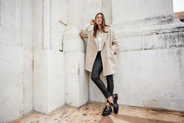 Combineer een trenchcoat met een chique jurk en boots tot de knie. Voeg hier een elegante knit aan toe om jouw outfit te upgraden. Of probeer verschillende stoffen en texturen te mixen. Ga bijvoorbeeld voor een zwart leren rok en combineer deze met een grof gebreide trui of satijnen top om een interessante look te creëren.