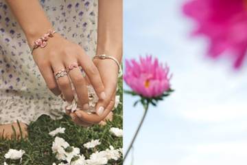 Ondanks hun lieve uitstraling zit er heel wat flower power in deze verfijnde sieraden en bedels, zoals het krachtige paars van de nieuwe Purple Daisy bedel. Deze bedel past mooi bij de roze madeliefjes. Verder zien we ook ringen in verschillende kleuren en materialen die je mooi kan combineren. Zo kun je een bloemenkrans maken van verschillende bedels om je pols.