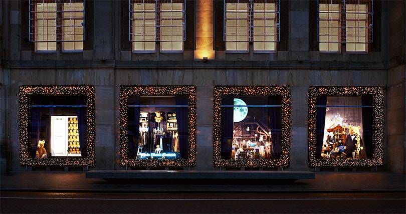 - Twee weken lang werken de visual teams in de winkels achter de schermen aan de opbouw van de feestseizoen etalages.
