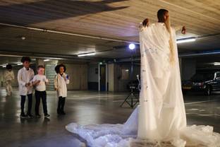 Het is zoeken naar een parkeerplaats voor de fashionshow van Yasmina Ajbilou. Even later blijkt waarom: de parkeergarage van het Open Space Contemporary Art Museum (Oscam) in Amsterdam is gereserveerd als showlocatie. Midden in de industriële ruimte staat een model in een witte jurk op een sokkel. Als de muziek begint verschijnen er twee...