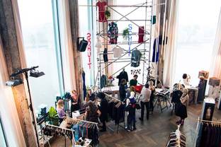 The Loft, op de zestiende verdieping van de nu al iconische A’DAM Toren, zal vooral popsterren en andere artiesten trekken. Deze vrijdagmiddag wordt de grootste slaapkamer van de stad echter bevolkt door de hippe voorhoede. Het is de eerste dag van de Dynamic Store, een nieuw programmaonderdeel van de Mercedes-Benz FashionWeek Amsterdam....