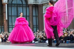Het tegengif voor ‘Quiet Luxury’ Het is niet echt nieuw, maar je zou de ‘historisch romantisch’-trend, het huidige tegengif van ‘quiet luxury’ kunnen noemen. Chiffon, tule, voile en kant worden gebruikt in grote schuimende volumes die de crinolines uit het Victoriaanse tijdperk terugbrengen. Misschien denken we enkel aan de zwarte variant, maar...