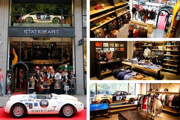 aan de Meent 120 in Rotterdam op grootste wijze geopend. De winkel bevindt zich in het hartje van Rotterdam en beschikt over maar liefst vier levels en beslaat in totaal zo’n 250m2. State of Art eigenaar Albert Westerman opende op woensdag 21 augustus vol trots en voor een groot publiek, samen met Jan Kees de Jager deze nieuwe flagshipstore van State of Art. Daarnaast waren ook prominenten als Jan Peter Balkenende, Gijs van Lennep, Allard Kalff en Jan Lammers van de partij.De opening was een groot spektakel. De Meent was omgetoverd in een heuse auto-paddock; er waren maar liefst negen unieke classic Porsche ‘s voor en tegenover de winkel aanwezig, waaronder de Porsche 550 Spyder 1500 RS uit 1955 en de Porsche 718 1500 RSK Spyder uit 1957. Deze zeer bijzondere en waardevolle auto’s die normaliter alleen in een automuseum te zien zijn zorgden mede voor een enorme exposure en veel bekijks bij alle voorbijgangers. Dat waren er veel, want tegelijkertijd vond een giga-event plaats; 5000 Rotterdamse skeeleraars passeerden de State of Art Grand Opening.