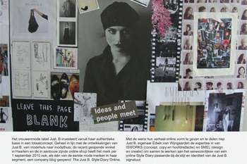 Geheel in lijn met de ontwikkelingen van Just B. van modehuis naar modethuis; de recent geopende winkel in Haarlem en de in aanbouw zijnde online shop heeft het merk per 1 september 2010 ook, als één van de eerste mode merken in haar segment, een company blog geopend: The Just B. Style Diary Online.The Just B. Style Diary online kent 4 categorieën: B.THERE (reizen | exposities | relax) B.INSPIRED (design | compliment) B.OURSELVES (verhalen en inspiratie uit het Just B. team) B.YOU (stijl en inspiratie ge-upload door consumenten en fans van het merk).