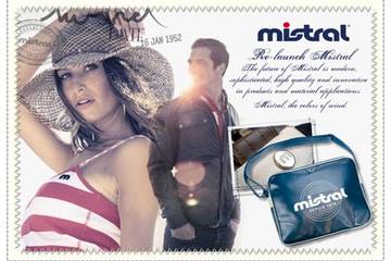weekend – 26 en 27 juli- aanwezig met een stand op de Modefabriek. De stand zal sterk inzoomen op de roots van het alom bekende Mistral en is tevens het startsein voor een opgefriste en eigentijdse Mistral look.Ook Mistral tassen, afkomstig van Vadobag, voor najaar 2009 en zomer 2010 zullen gepresenteerd worden op de Modefabriek. Uitgekiende en geavanceerde tassen voor de sportieve vrouw en man. Combinaties van innovatieve materialen, mooie details, actuele modellen en frisse kleuren. Voor zomer 2010 zien we zilveren materialen die de weerspiegeling van het zonlicht op het water evenaren, maar ook natuurtinten zoals zand die doorgevoerd worden in onmisbare zomerse stijlvolle basics.