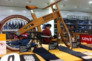 Alleen nog die vreselijke regenkleding... Zo niet sexy. Als er nota bene koperen of houten fietsen bestaan, kan het toch niet zo moeilijk zijn om een beetje een knap regenpak te bedenken? Een hippe poncho of een leuke zuidwester misschien? Een enorm gat in de markt! Als we daar nu eens een high profile design contest van maken...