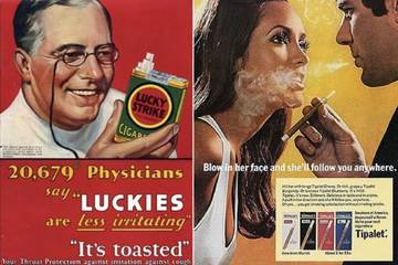 en beledigd door achterlijke reclame boodschappen. Alsof we zo maar alles geloven.Heel wat anders dan de romantische, naïeve Mad Men-tijd... Roken was avontuurlijk en sexy, vlekken verdwenen als sneeuw voor de zon en Vim doodde 99 procent van de huishoudbacteriën. Het ging erin als zoete koek en maakte het leven overzichtelijk. Pseudo-arts prijst Lucky Strike aan en een mooi meisje danst met een sigaret in de hand. Wie wil dat nu niet geloven? Er bestond simpelweg geen twijfel en we wilden het maar al te graag geloven. Heerlijk.