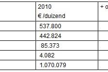 Omzet van de group per divisie (in €):